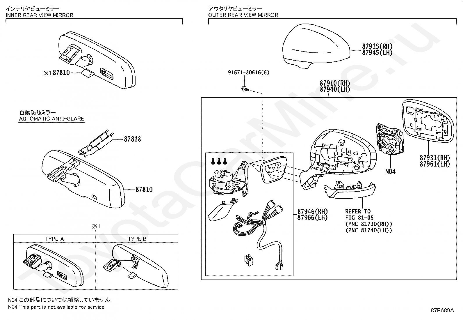 Зеркало TOYOTA PRIUS(PLUG-IN HBD)