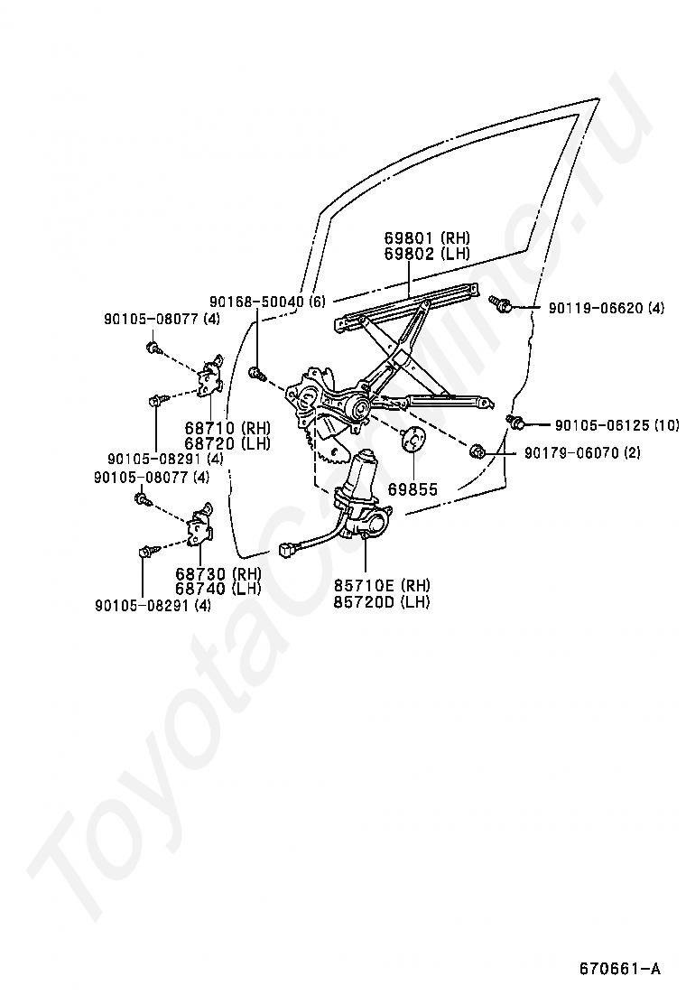 Стеклоподъемник и петли передней двери TOYOTA RAUM