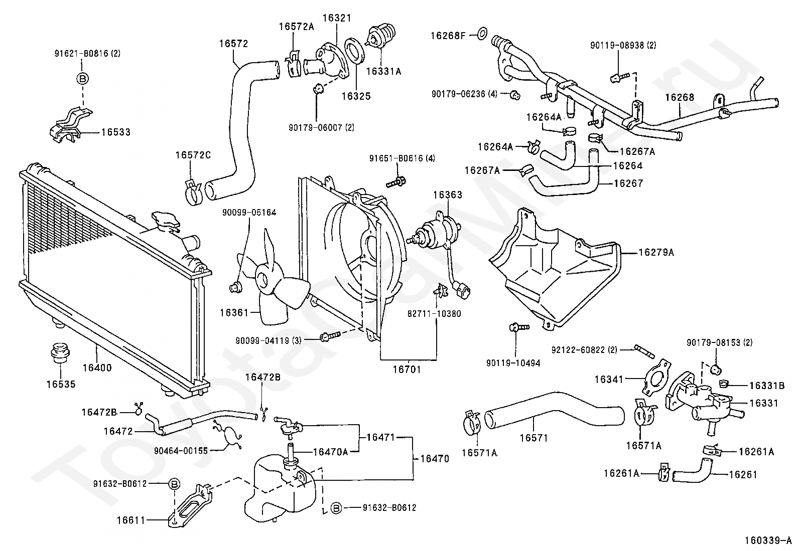 CLAMP OR CLIP, HOSE(FOR RADIATOR OUTLET NO.2)
