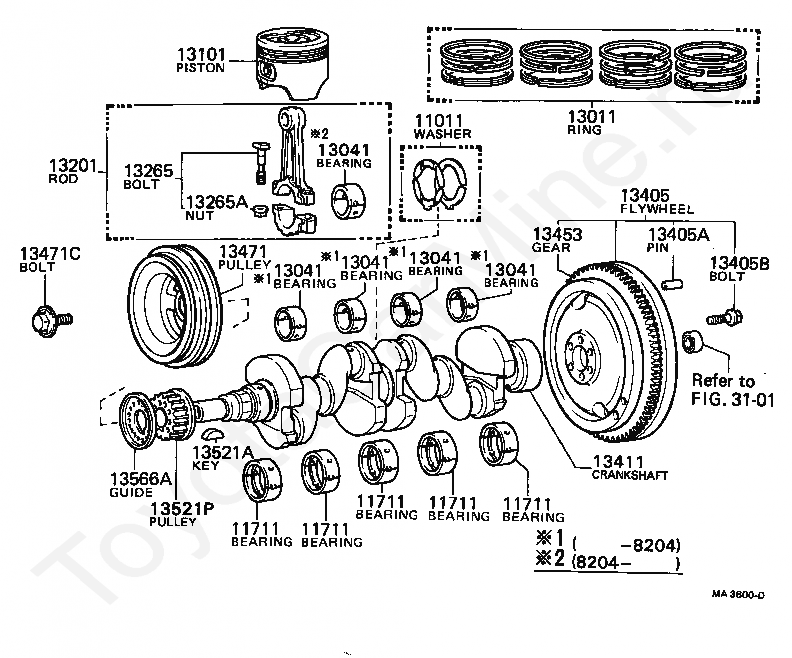 Коленвал и поршни TOYOTA SPRINTER