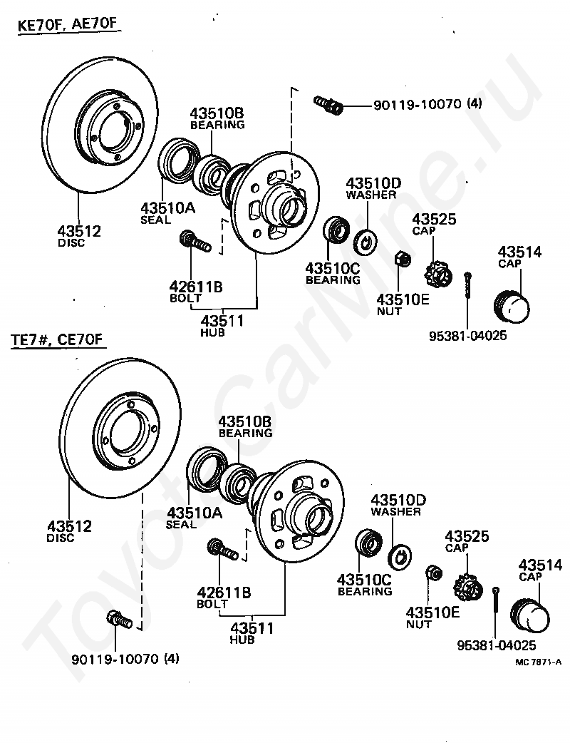 Передняя ступица и тормозной диск TOYOTA SPRINTER