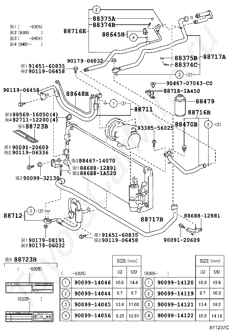Кондиционер: охлаждающие трубки TOYOTA SPRINTER