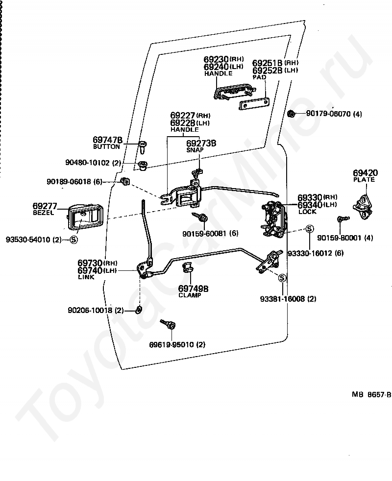 Замок и ручка задней двери TOYOTA TOYOACE