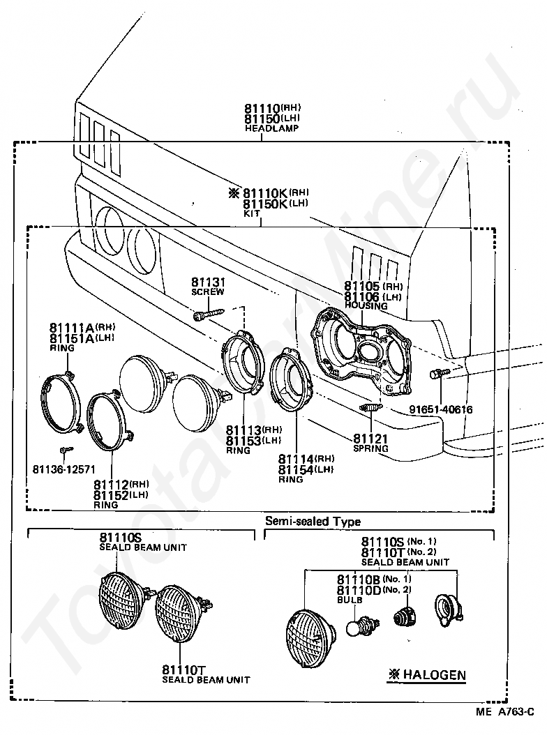 RING, SEALED BEAM MOUNTING, NO.2 LH