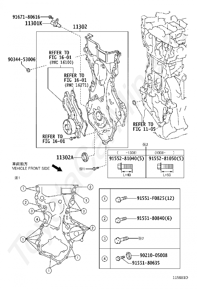 TIMING GEAR COVER & REAR END PLATE TOYOTA URBAN CRUISER