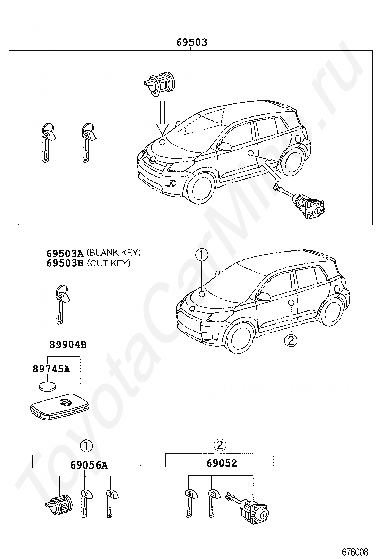 Комплект личинок замков TOYOTA URBAN CRUISER