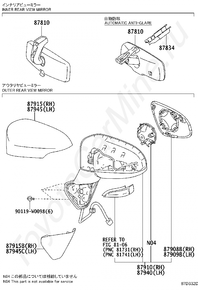 MIRROR ASSY, OUTER REAR VIEW, RH
