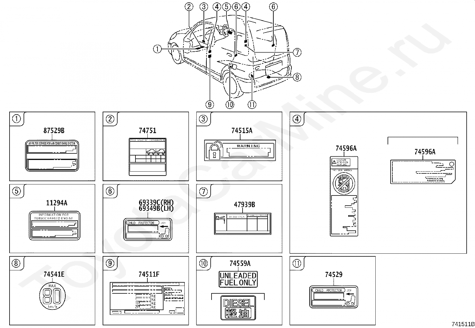 Информационные таблички TOYOTA YARIS/ECHO VERSO