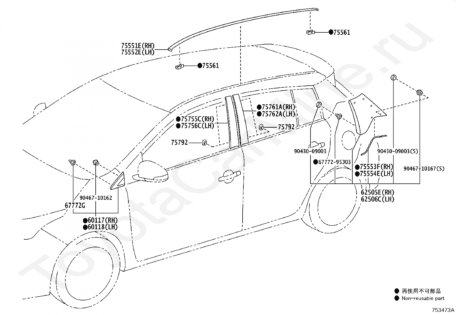 MOULDING, REAR DOOR WINDOW FRAME, FRONT RH