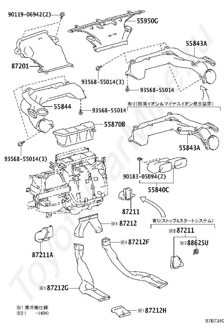 Кондиционер: управление и воздуховод TOYOTA VITZ
