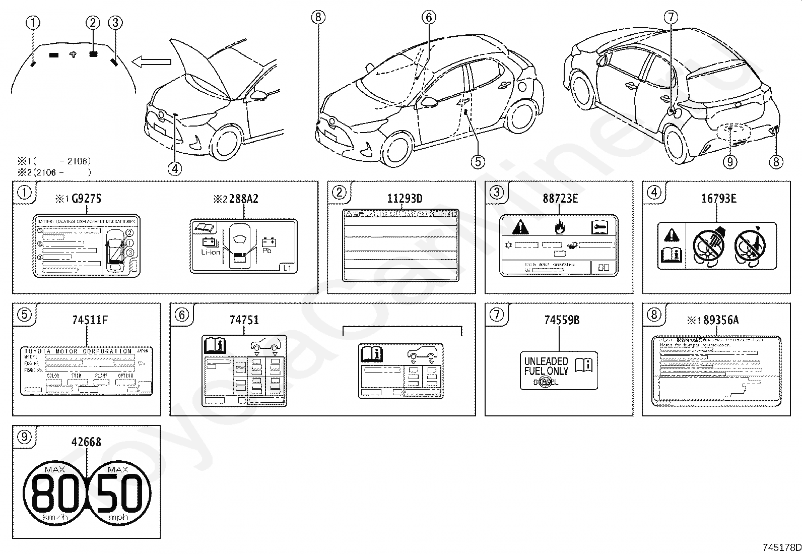 Информационные таблички TOYOTA YARIS