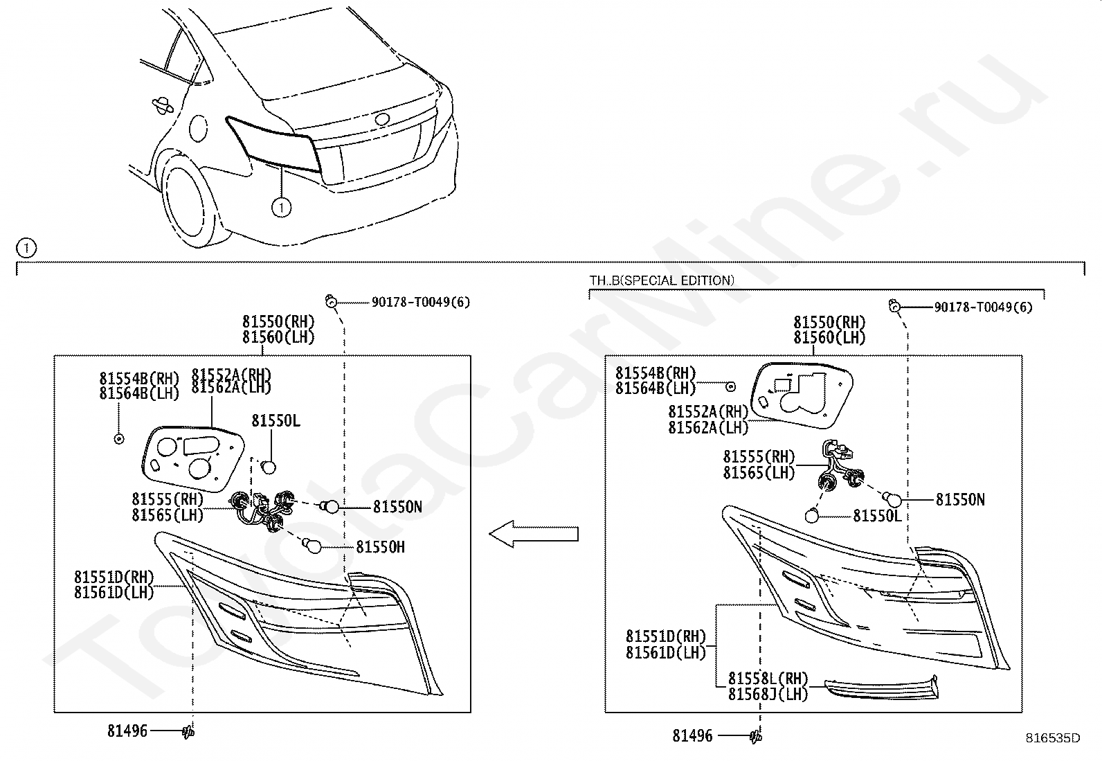 LENS & BODY, REAR COMBINATION LAMP, LH