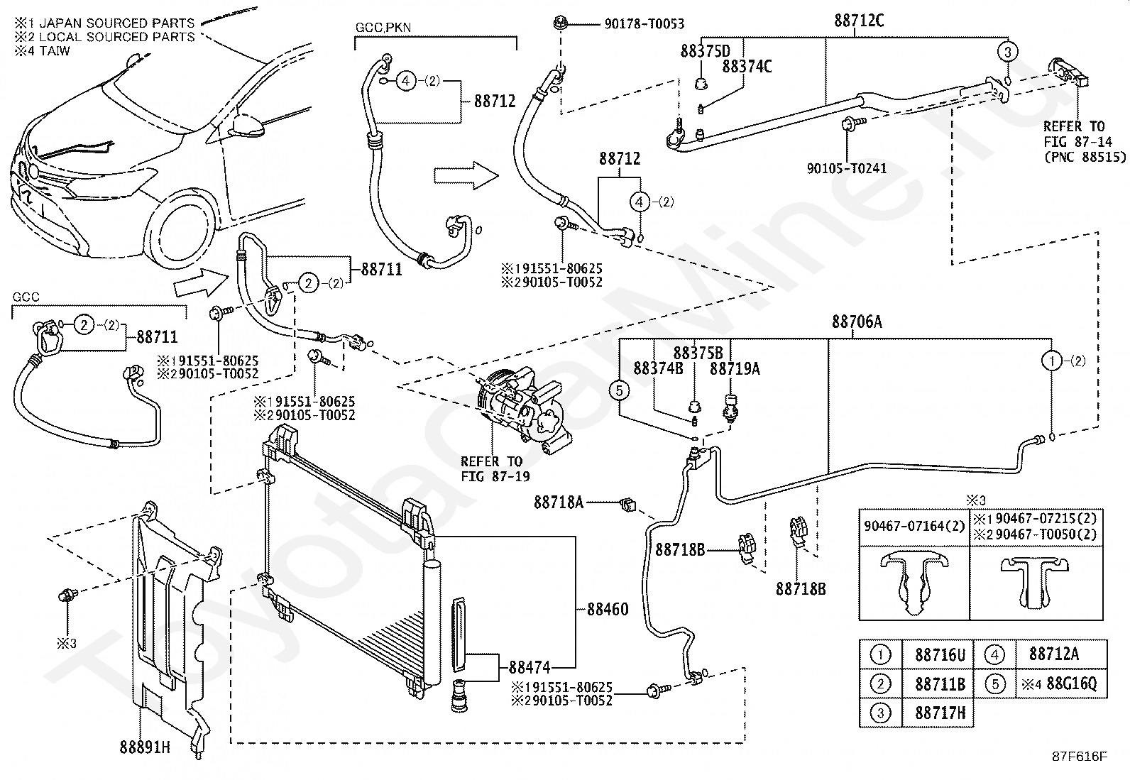 Кондиционер: охлаждающие трубки TOYOTA YARIS/VIOS/LIMO