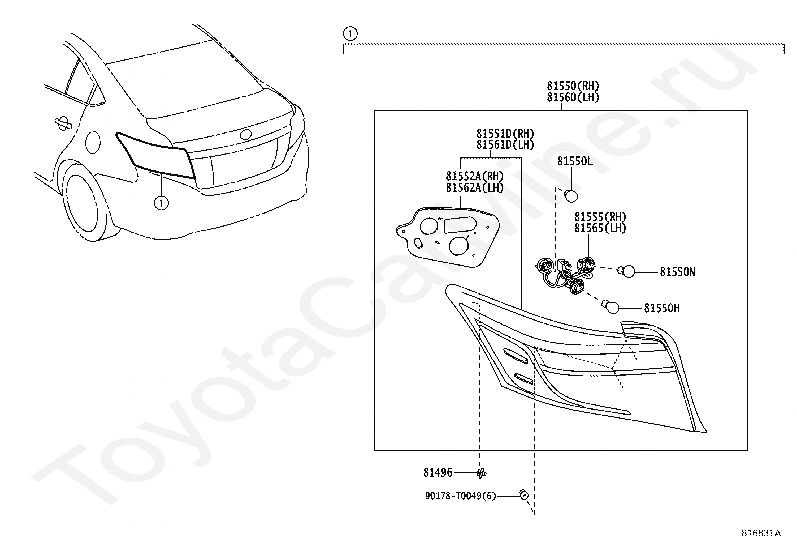 LENS & BODY, REAR COMBINATION LAMP, LH
