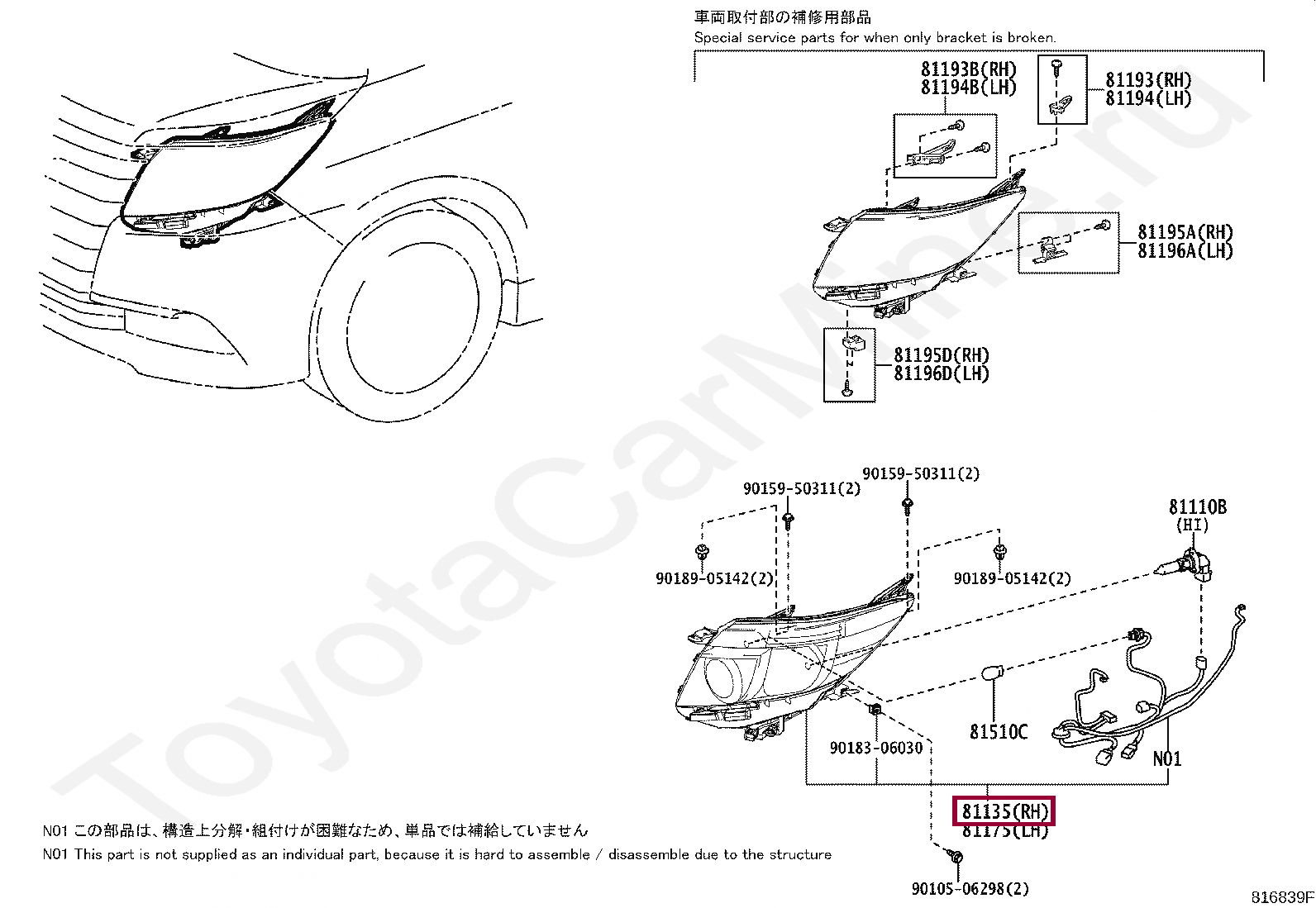 Фара головного света правая Toyota Noah