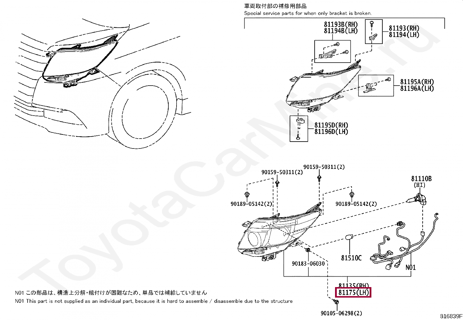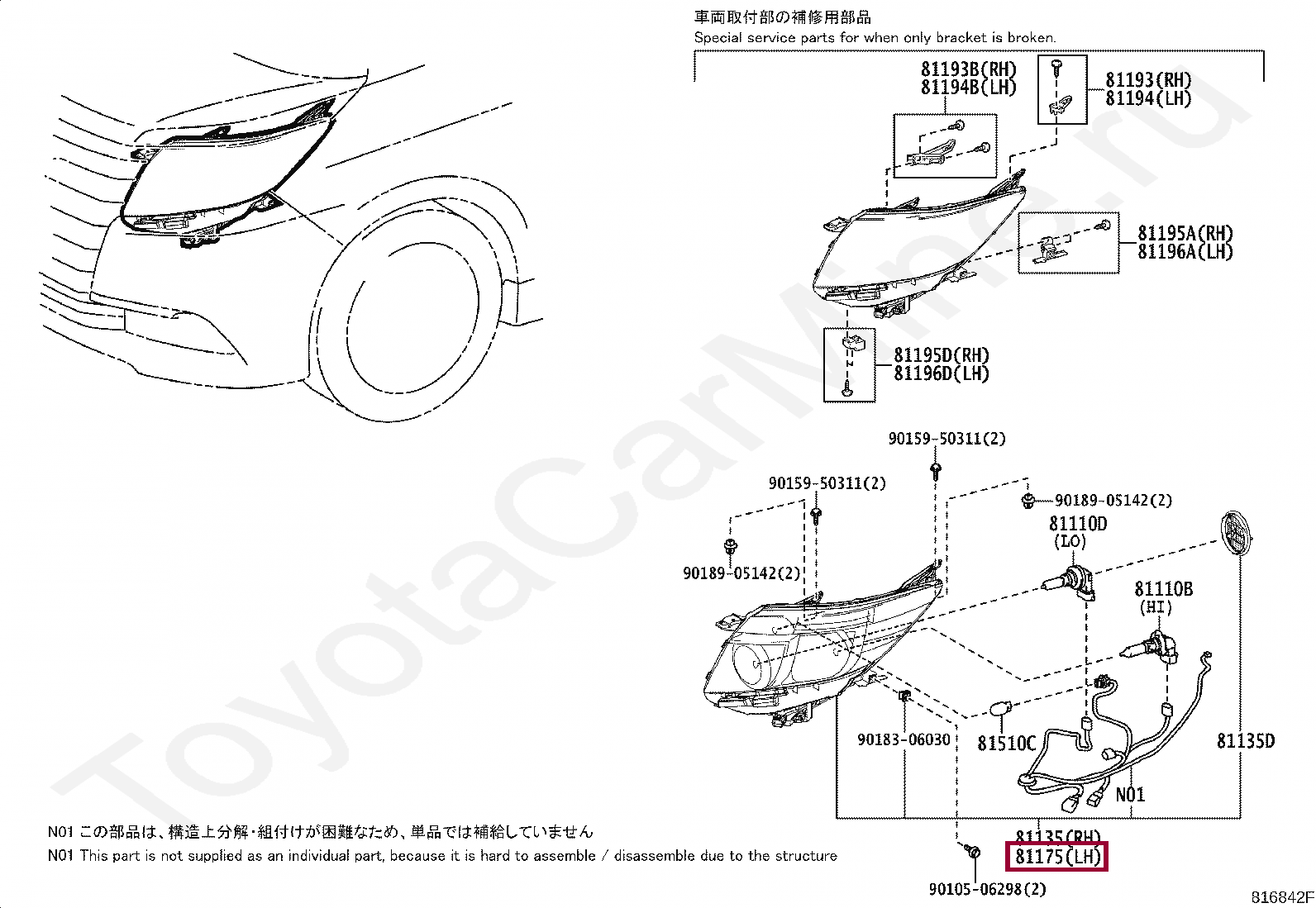 Фара головного света левая Toyota Noah