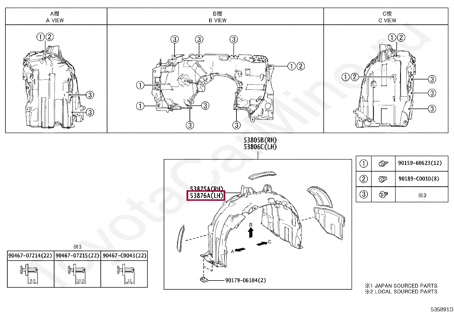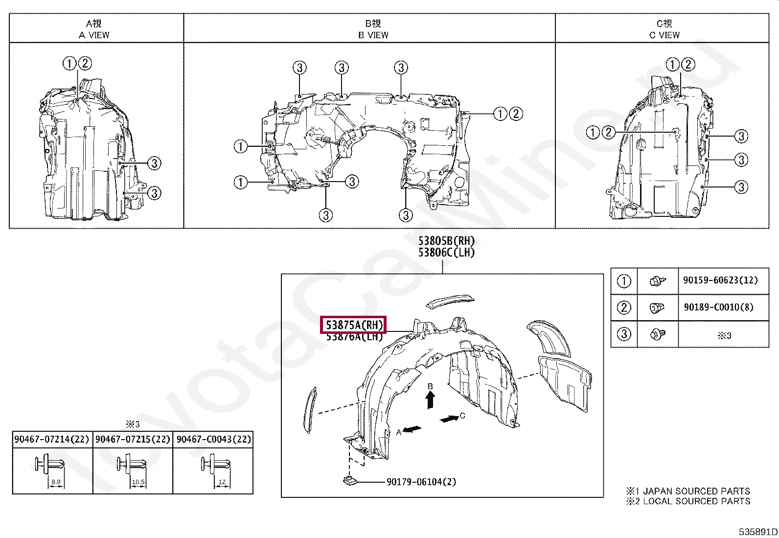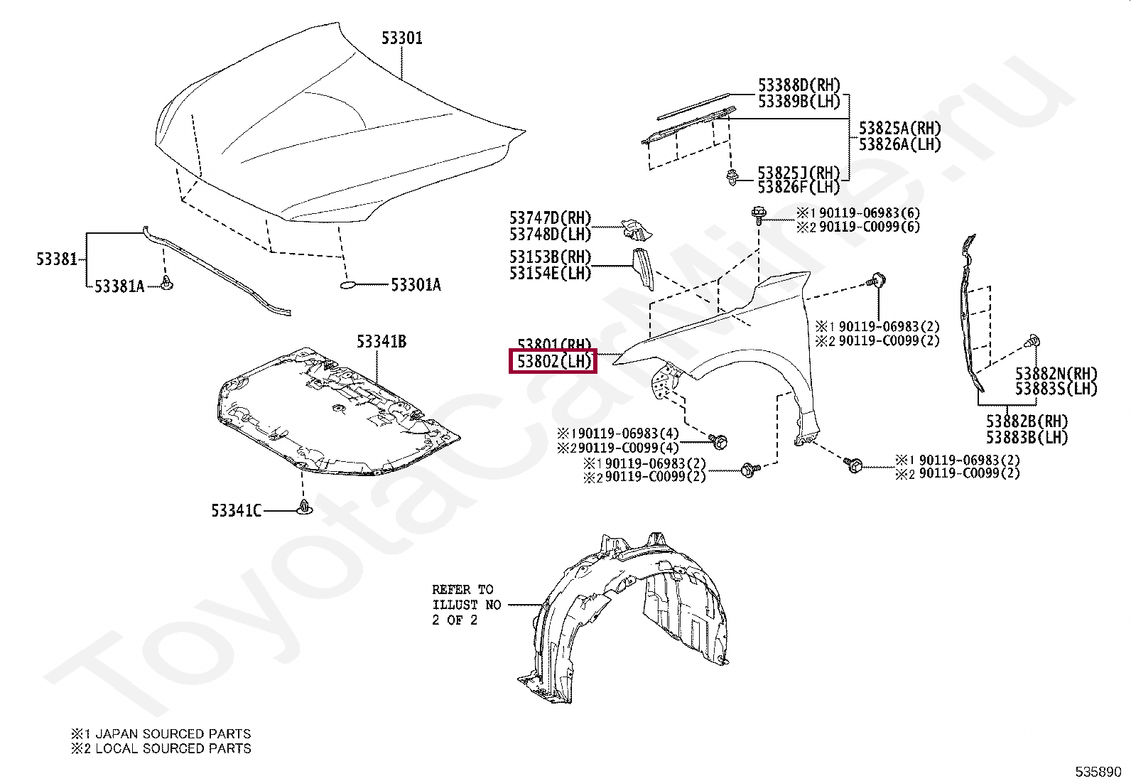 Подкрылок правый Toyota Avalon
