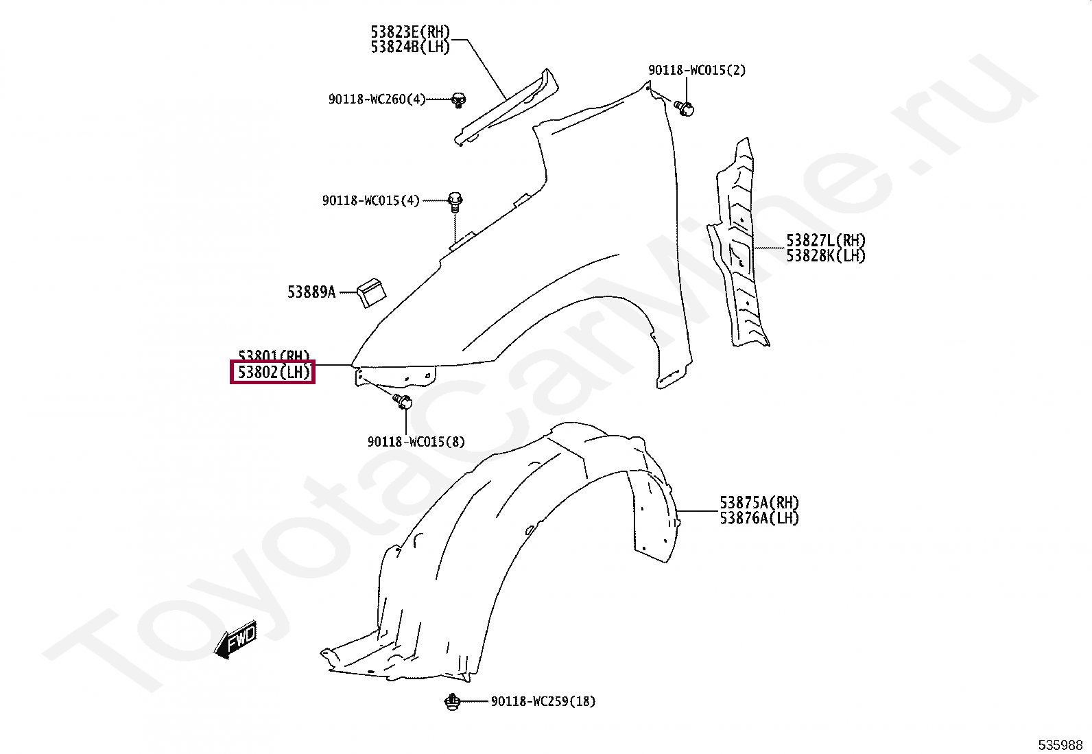 Подкрылок правый Toyota Starlet