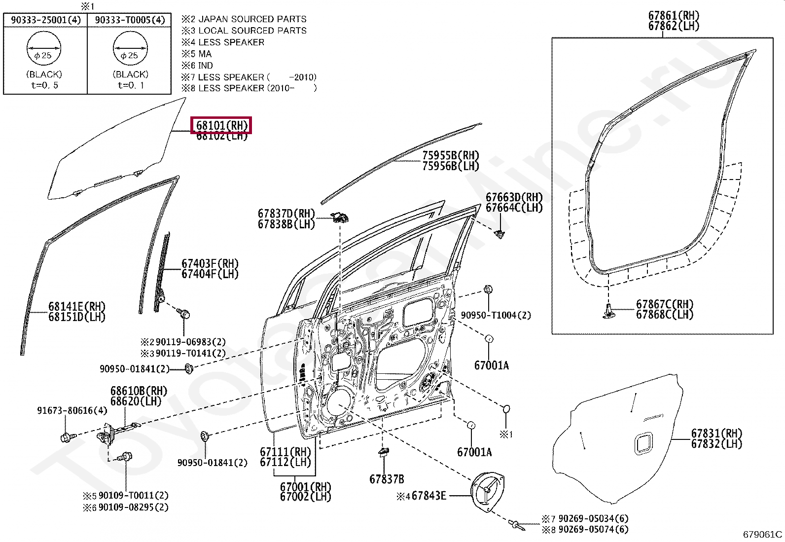 Стекло переднее правое Toyota Innova