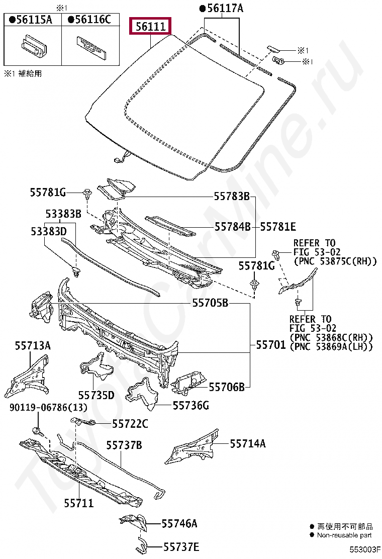 Стекло лобовое Toyota Porte