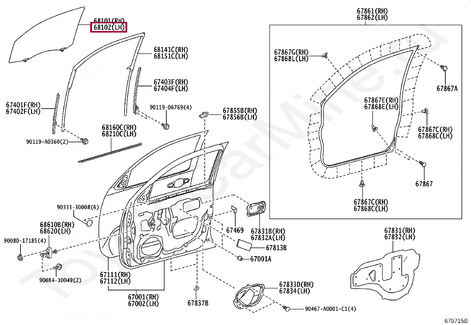 Стекло переднее правое Toyota Tacoma