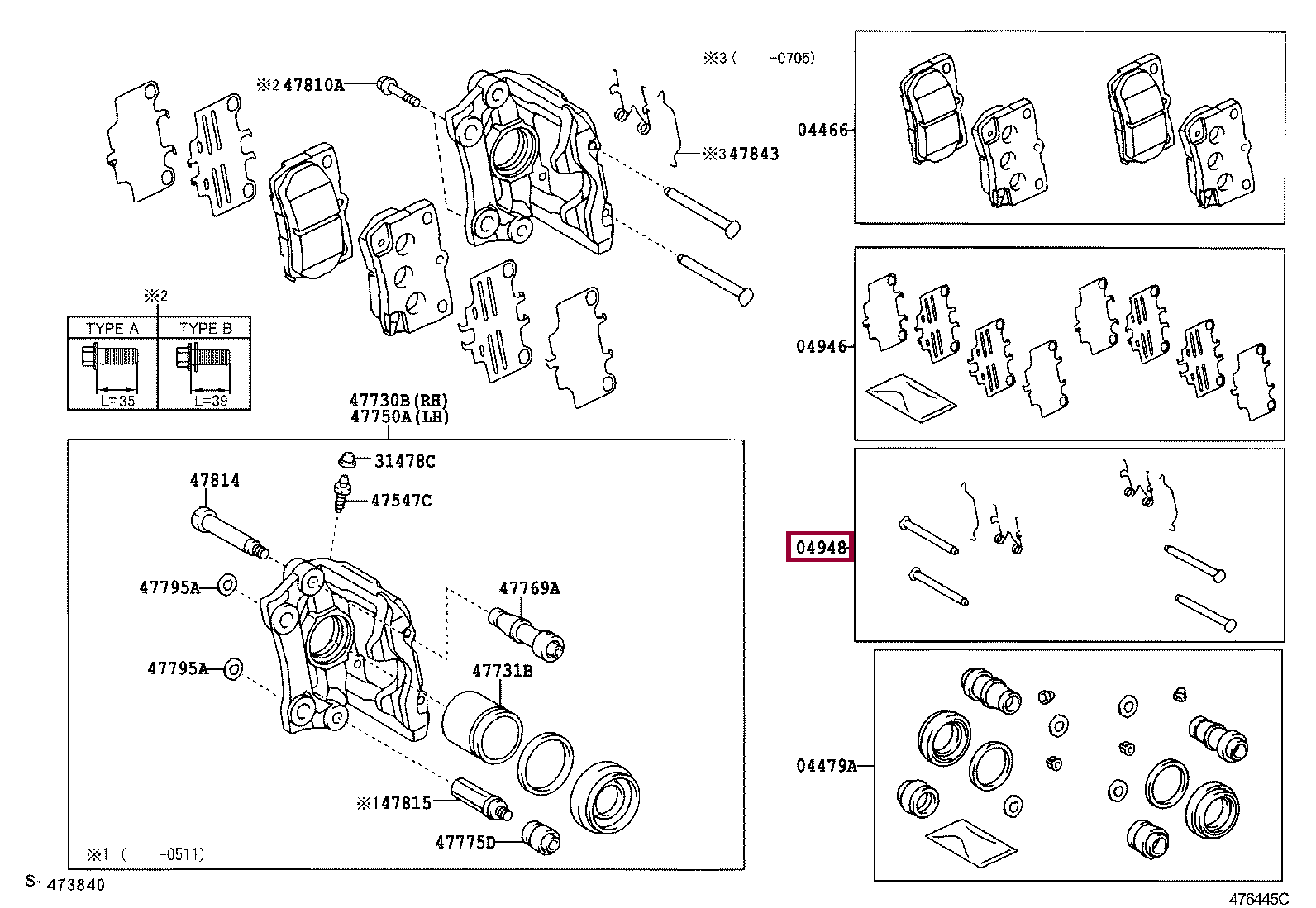 04948-30100, Комплект крепежа тормозных колодок
