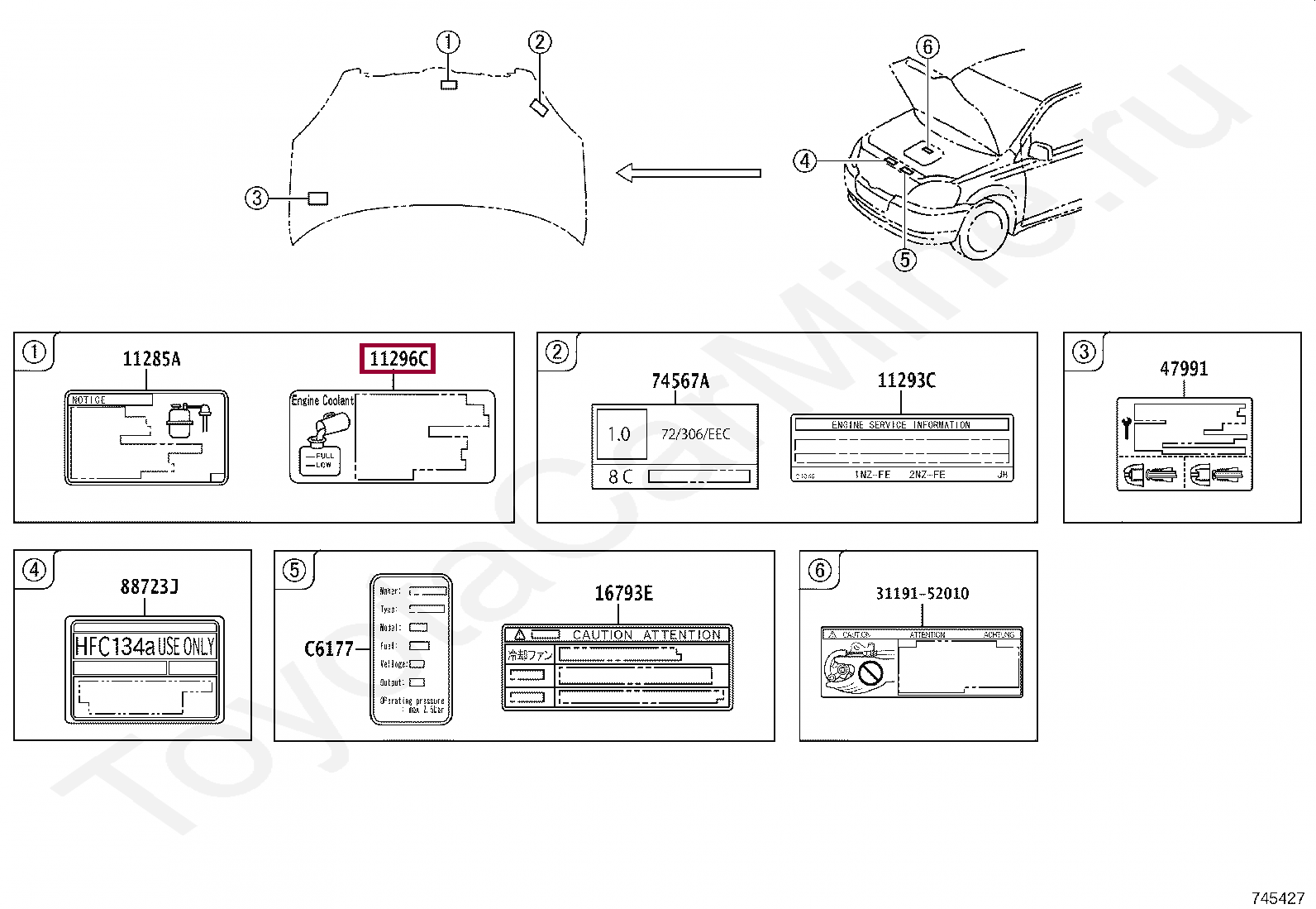 11296-27020, LABEL, ENGINE SERVICE INFORMATION