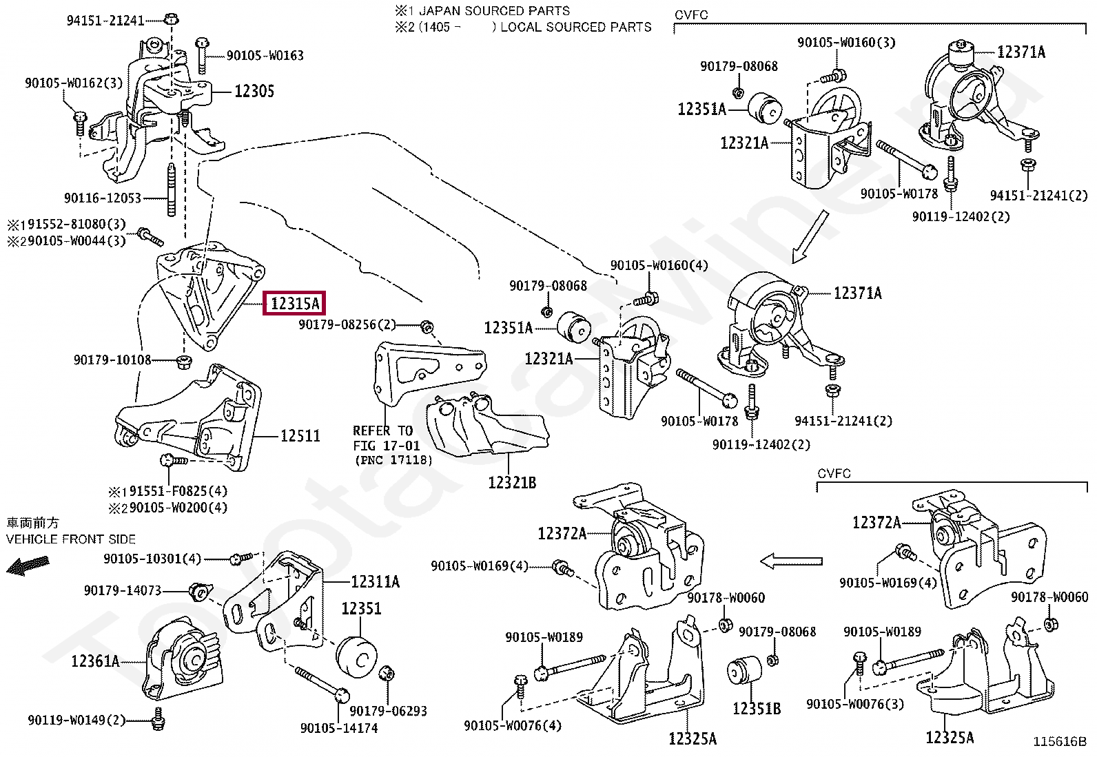 12315-37030, BRACKET, ENGINE MOUNTING, RH(FOR TRANSVERSE ENGINE)