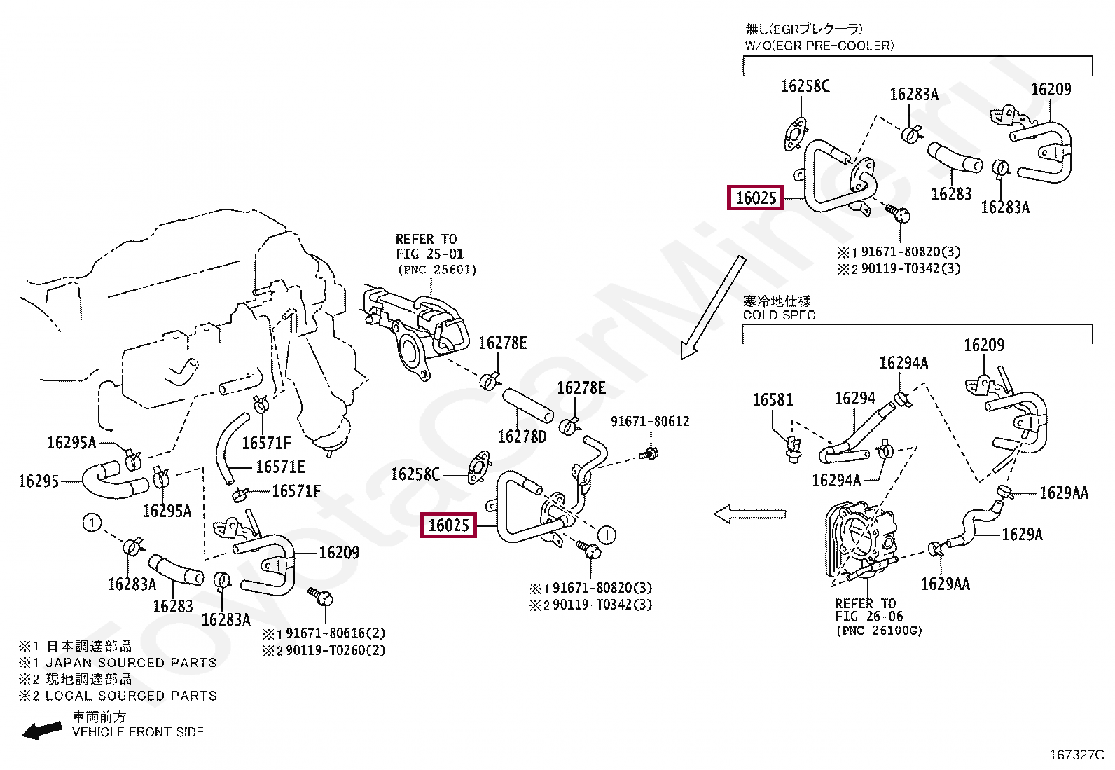16025-11010, PIPE SUB-ASSY, WATER BY-PASS, NO.5