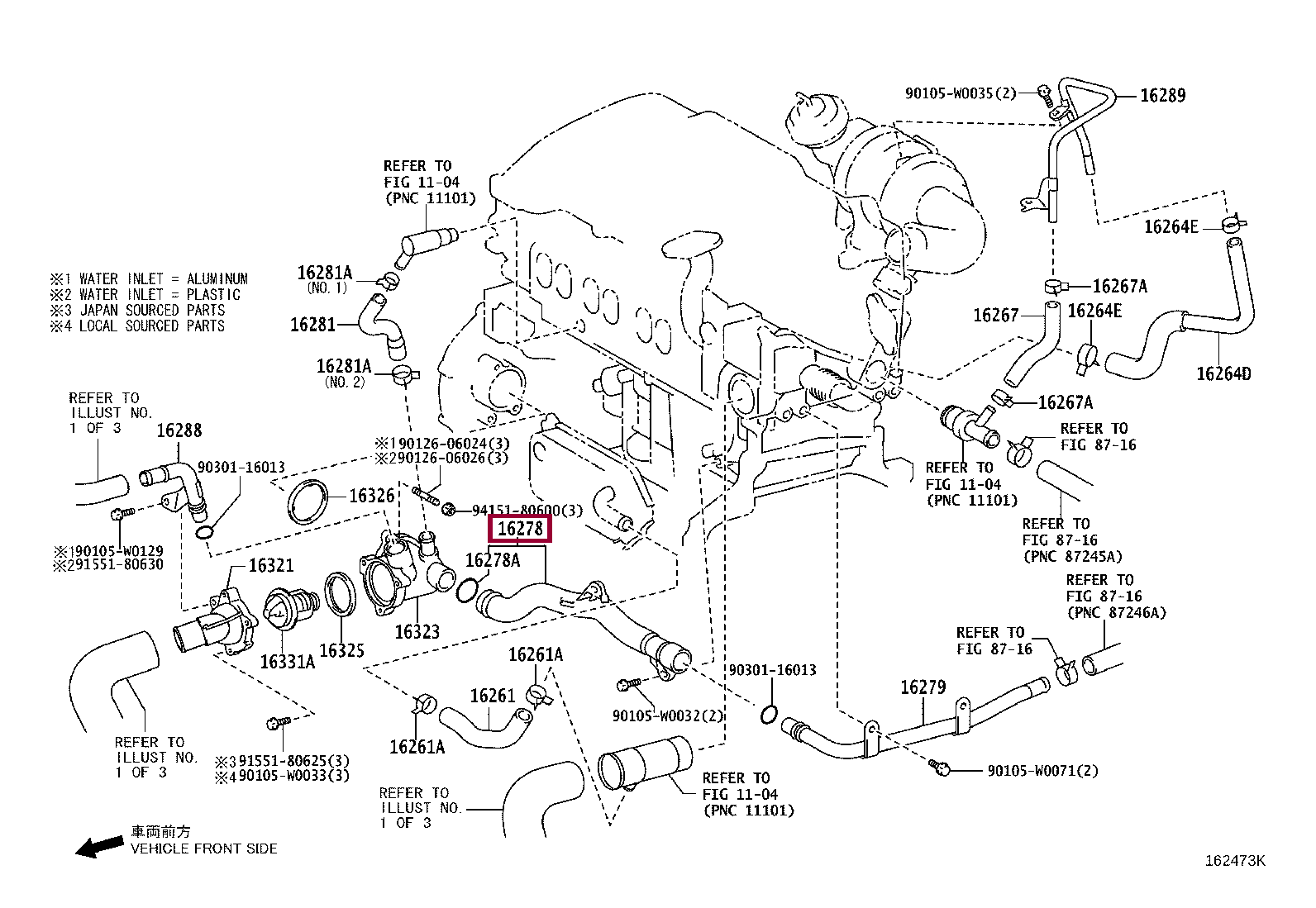 16278-0R010, PIPE, WATER BY-PASS, NO.2