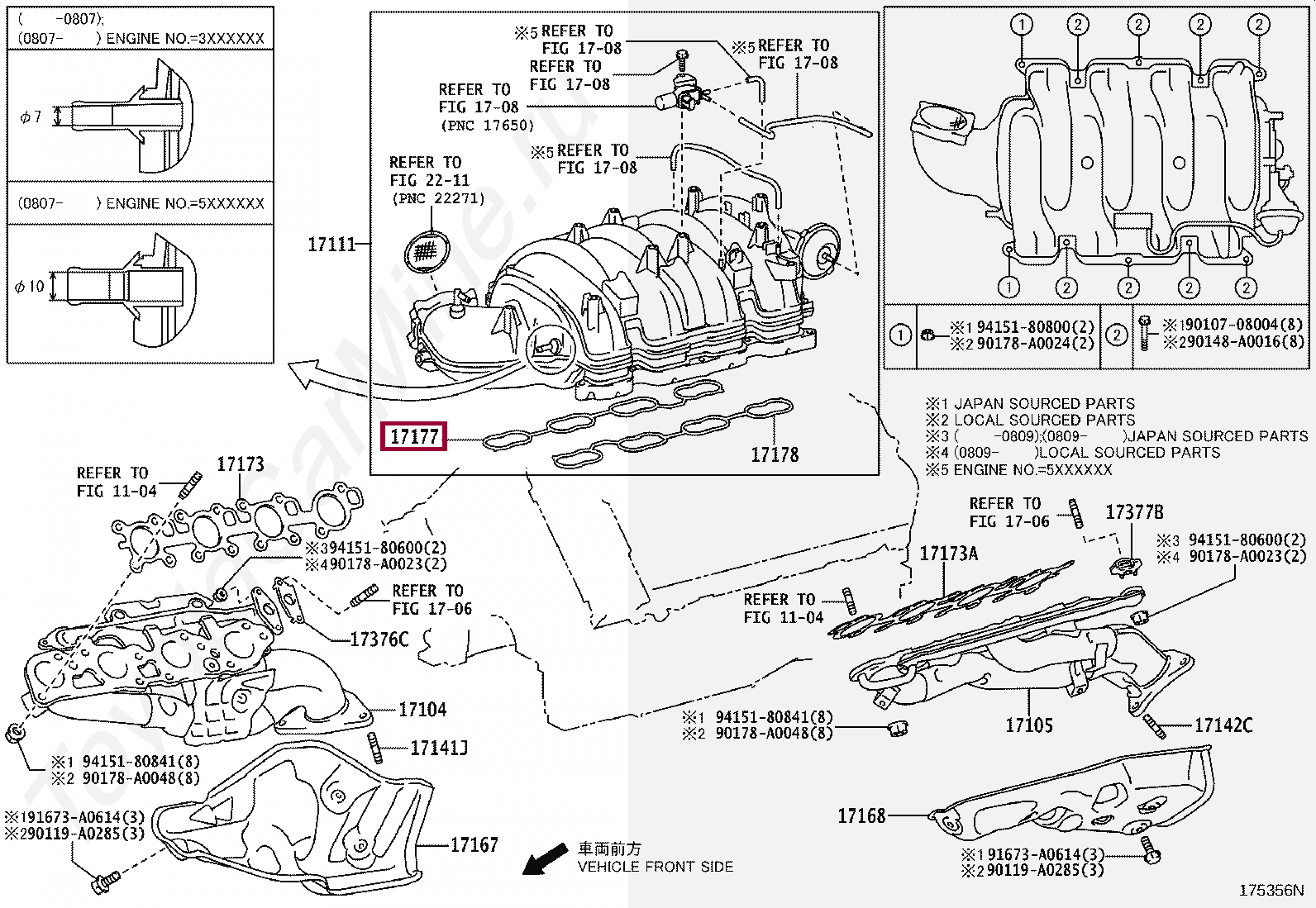 17171-0S030, GASKET, INTAKE MANIFOLD TO HEAD, NO.2