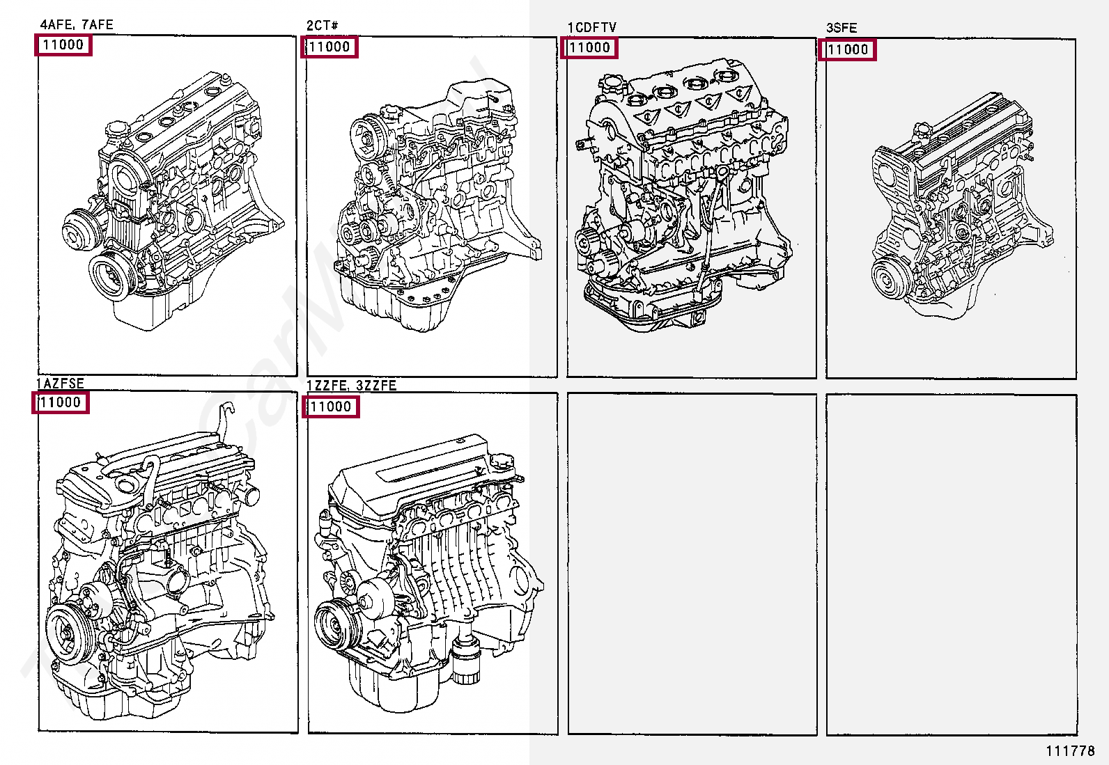 19000-27170, ENGINE ASSY, PARTIAL