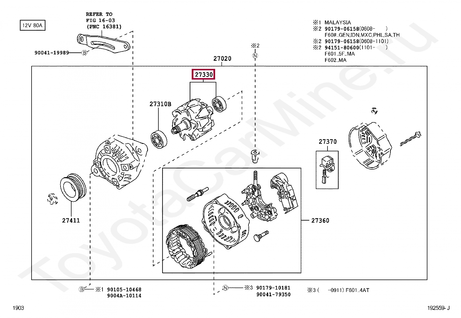 27330-BZ030, ROTOR ASSY, ALTERNATOR