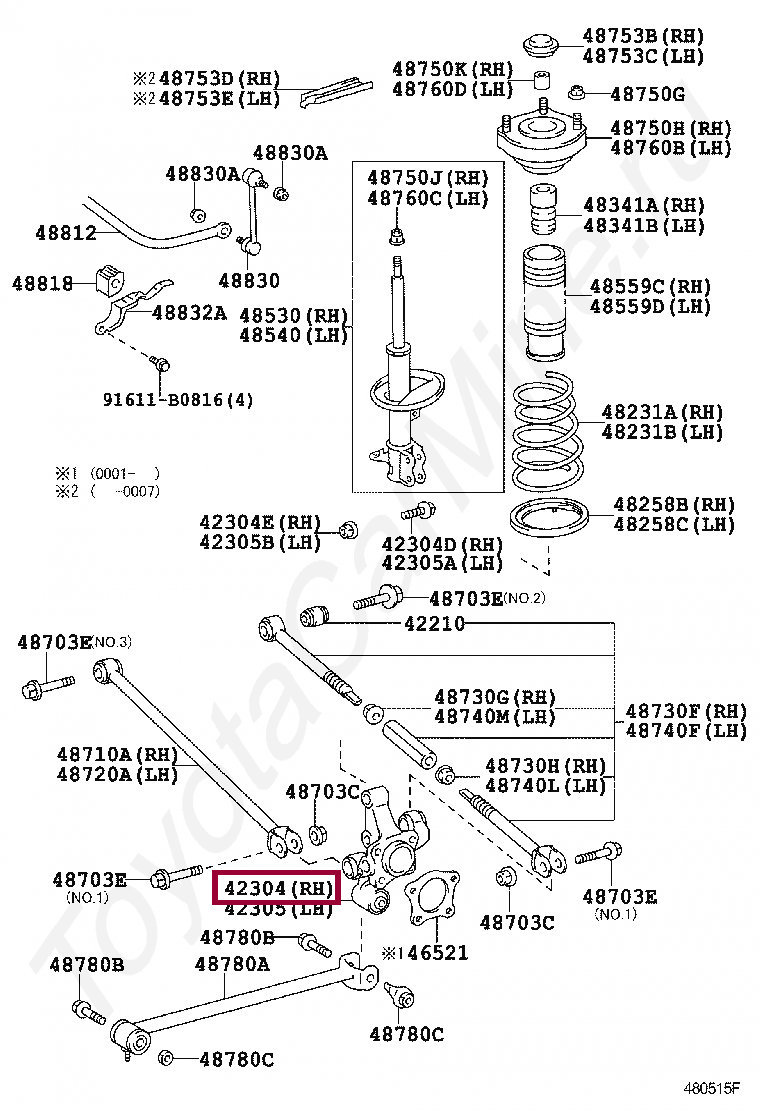 42304-05050, CARRIER SUB-ASSY, REAR AXLE, RH