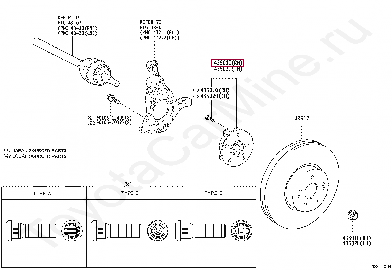 43550-07010, HUB SUB-ASSY, FRONT AXLE, LH