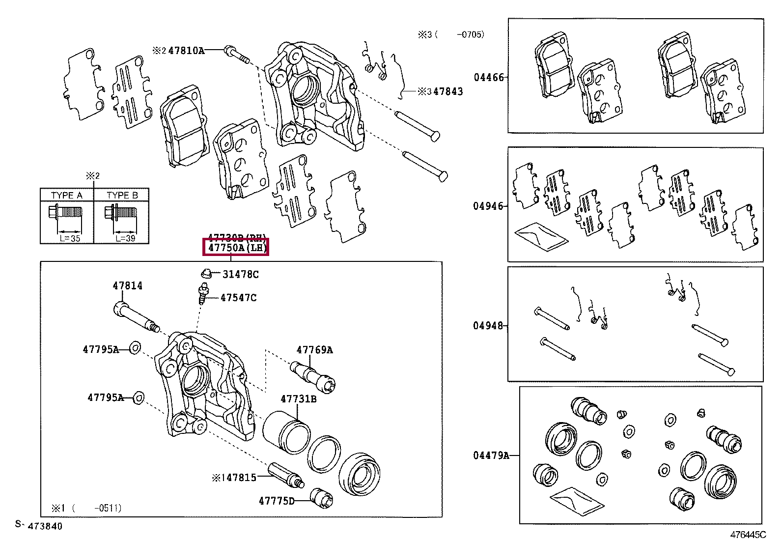 47850-53070, CYLINDER ASSY, DISC BRAKE, REAR LH