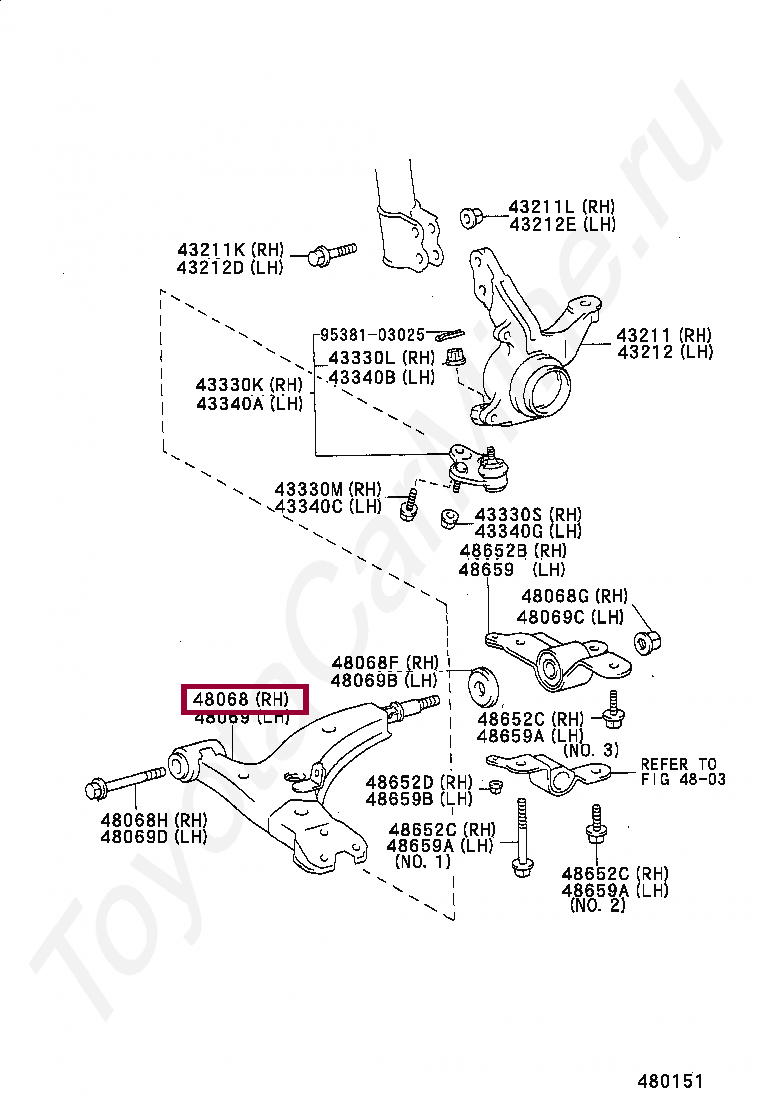 48068-12140, ARM SUB-ASSY, FRONT SUSPENSION, LOWER NO.1 RH