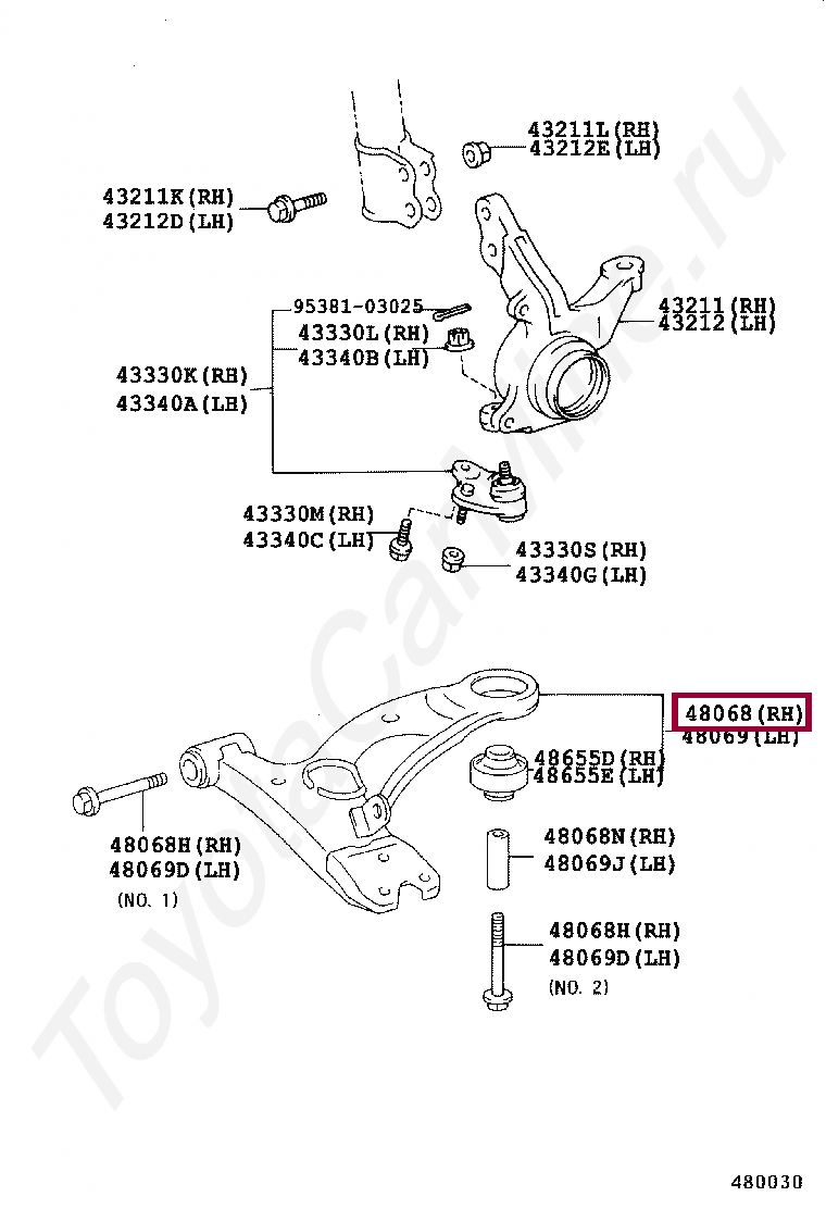 48068-20311, ARM SUB-ASSY, FRONT SUSPENSION, LOWER NO.1 RH