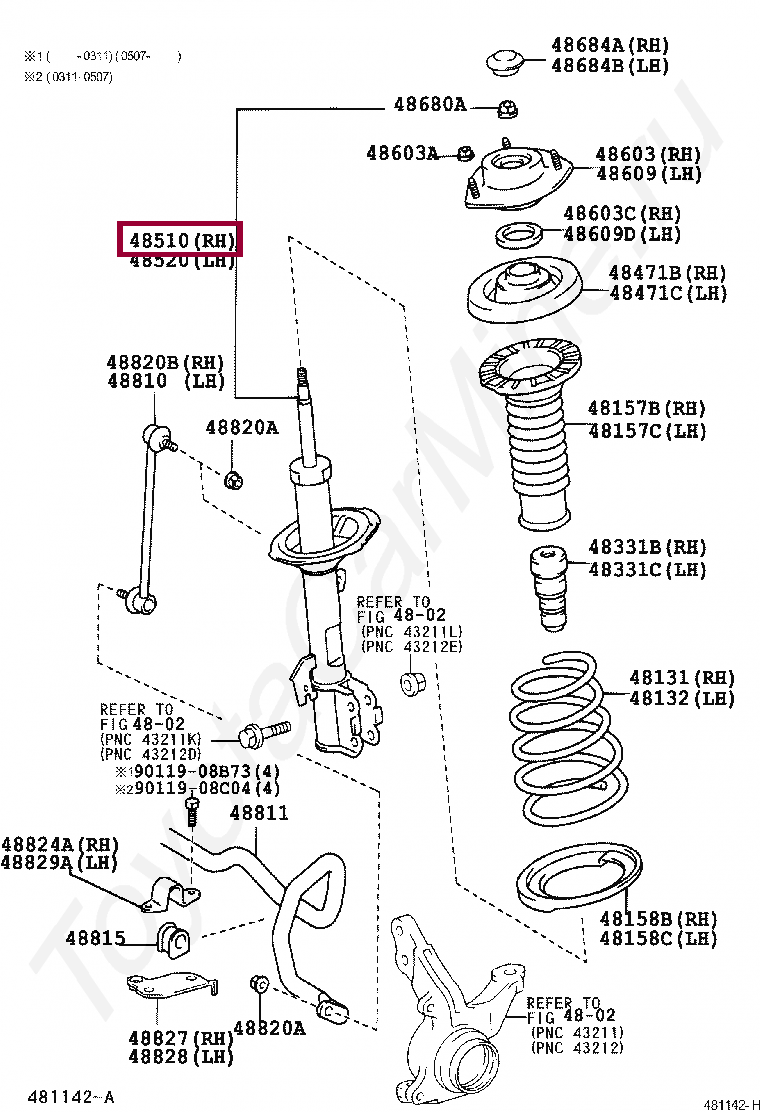 48510-49535, ABSORBER ASSY, SHOCK, FRONT RH