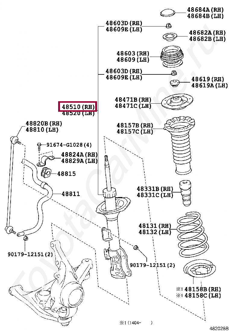 48510-80440, ABSORBER ASSY, SHOCK, FRONT RH