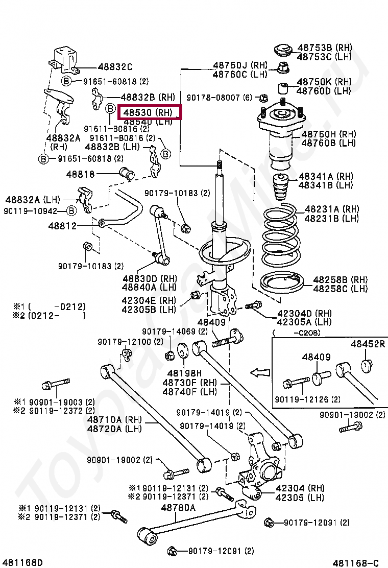 48530-49225, ABSORBER ASSY, SHOCK, REAR RH