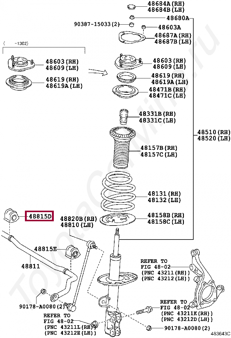48815-0R020, BUSH, FRONT STABILIZER BAR, RH