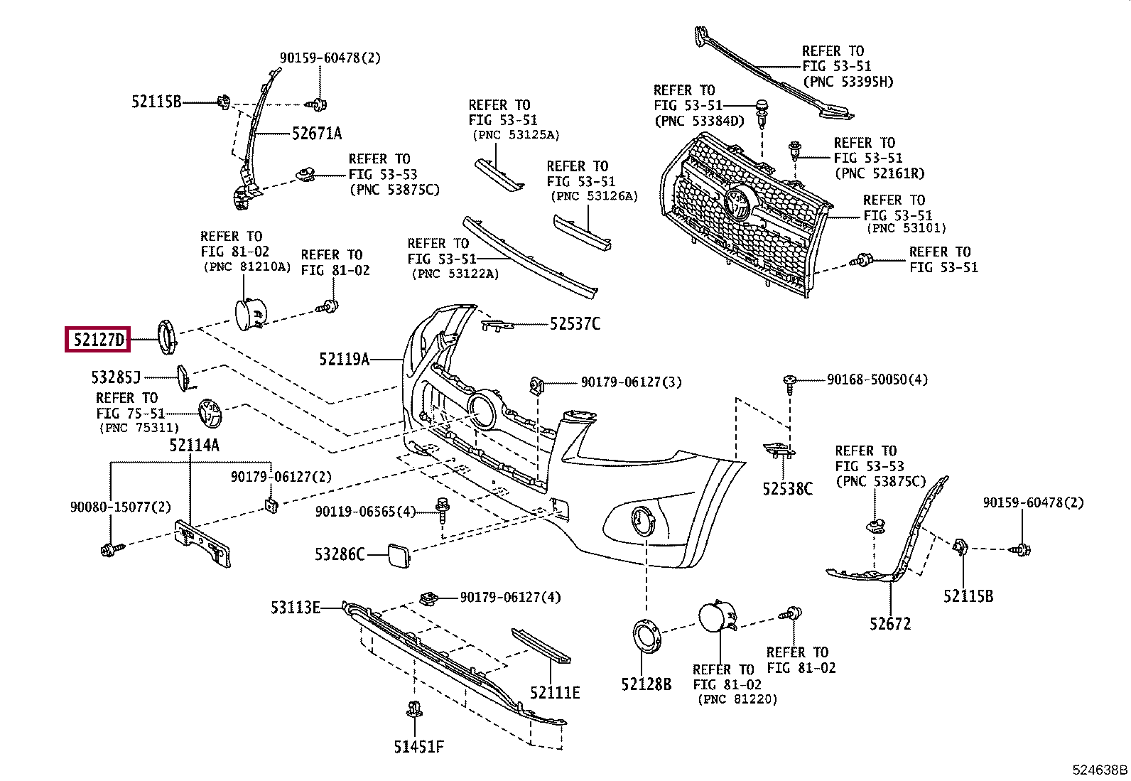 52127-0R030, COVER, FRONT BUMPER HOLE, RH