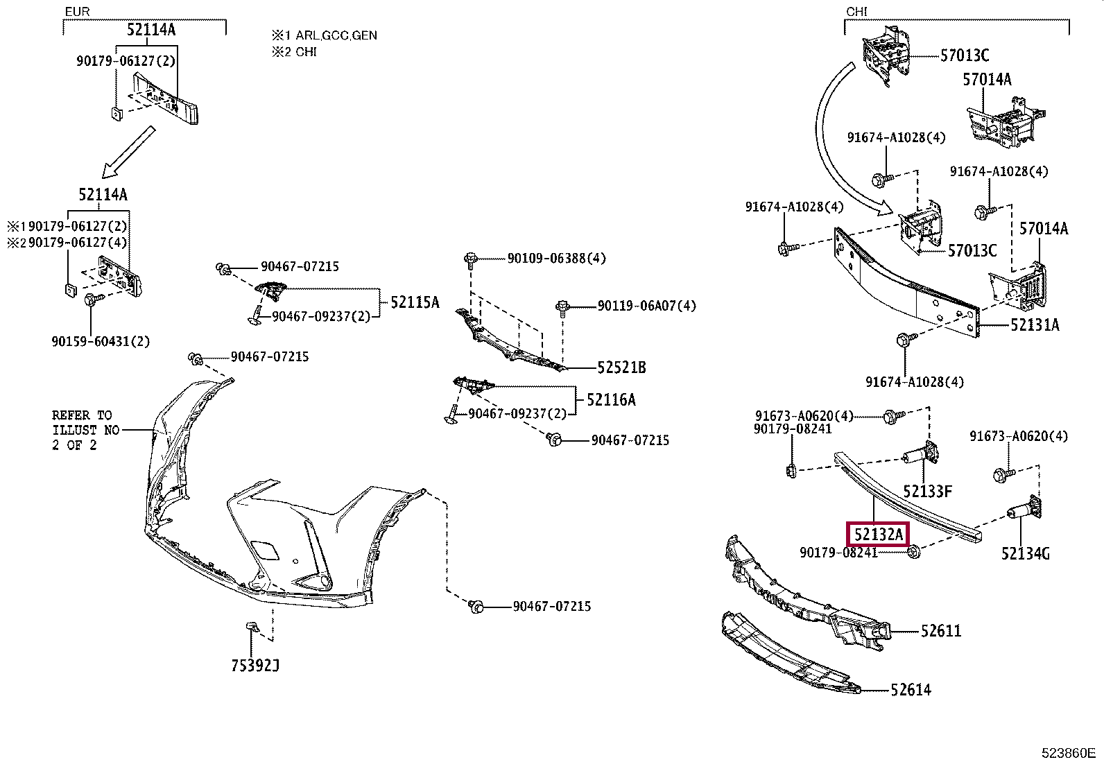 52132-76030, REINFORCEMENT, FRONT BUMPER, NO.2
