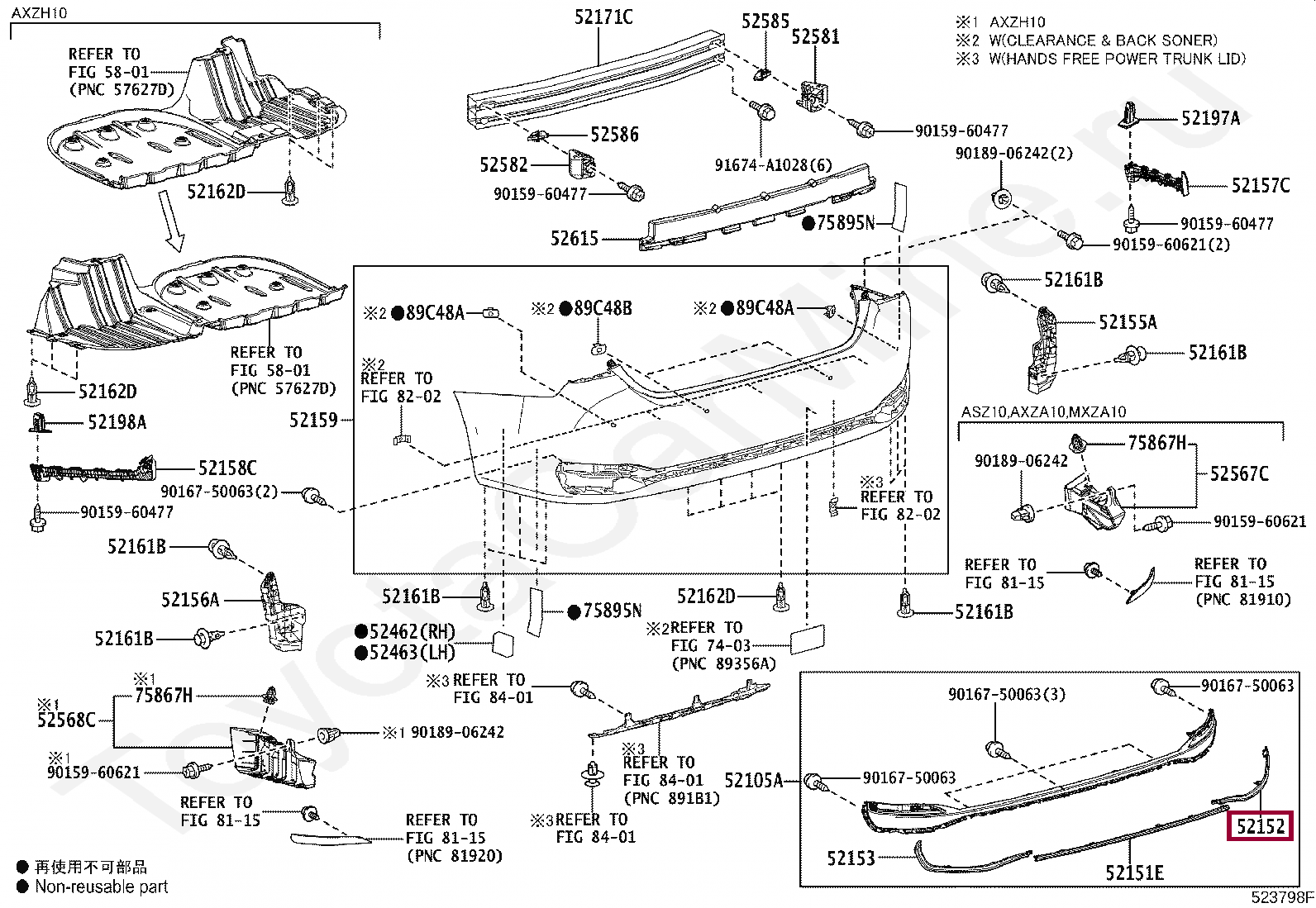 52152-33020, BAR, REAR BUMPER, RH