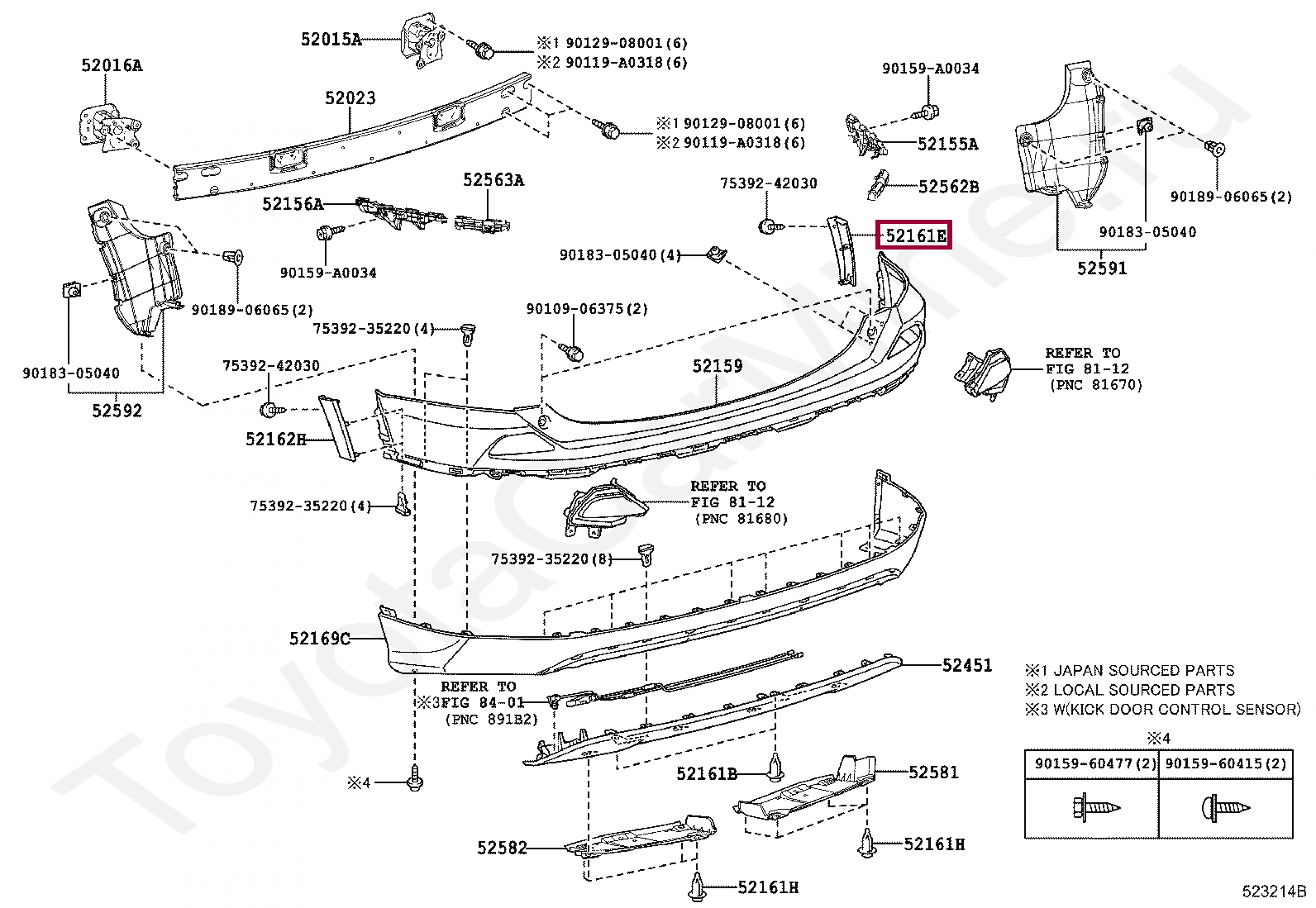 52161-0R020, EXTENSION, REAR BUMPER SIDE, RH