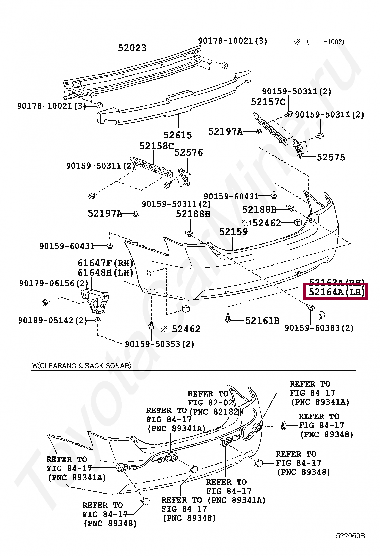 52164-33010-B0, PLATE, REAR BUMPER, LH