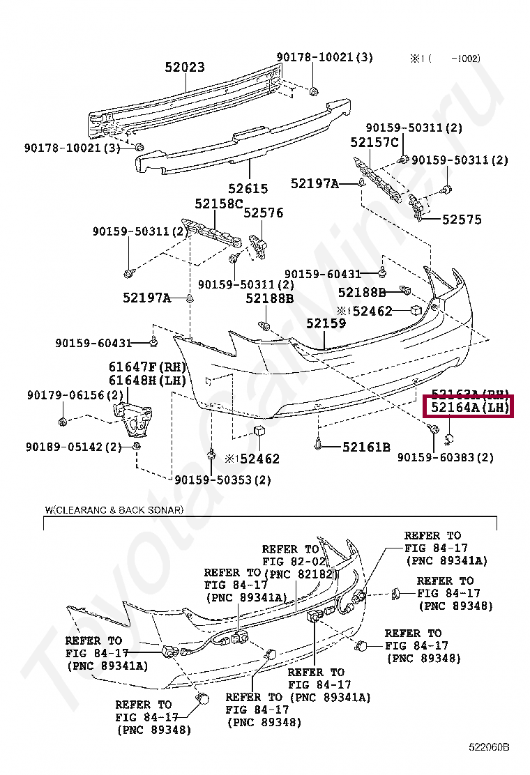 52164-33010-B1, PLATE, REAR BUMPER, LH