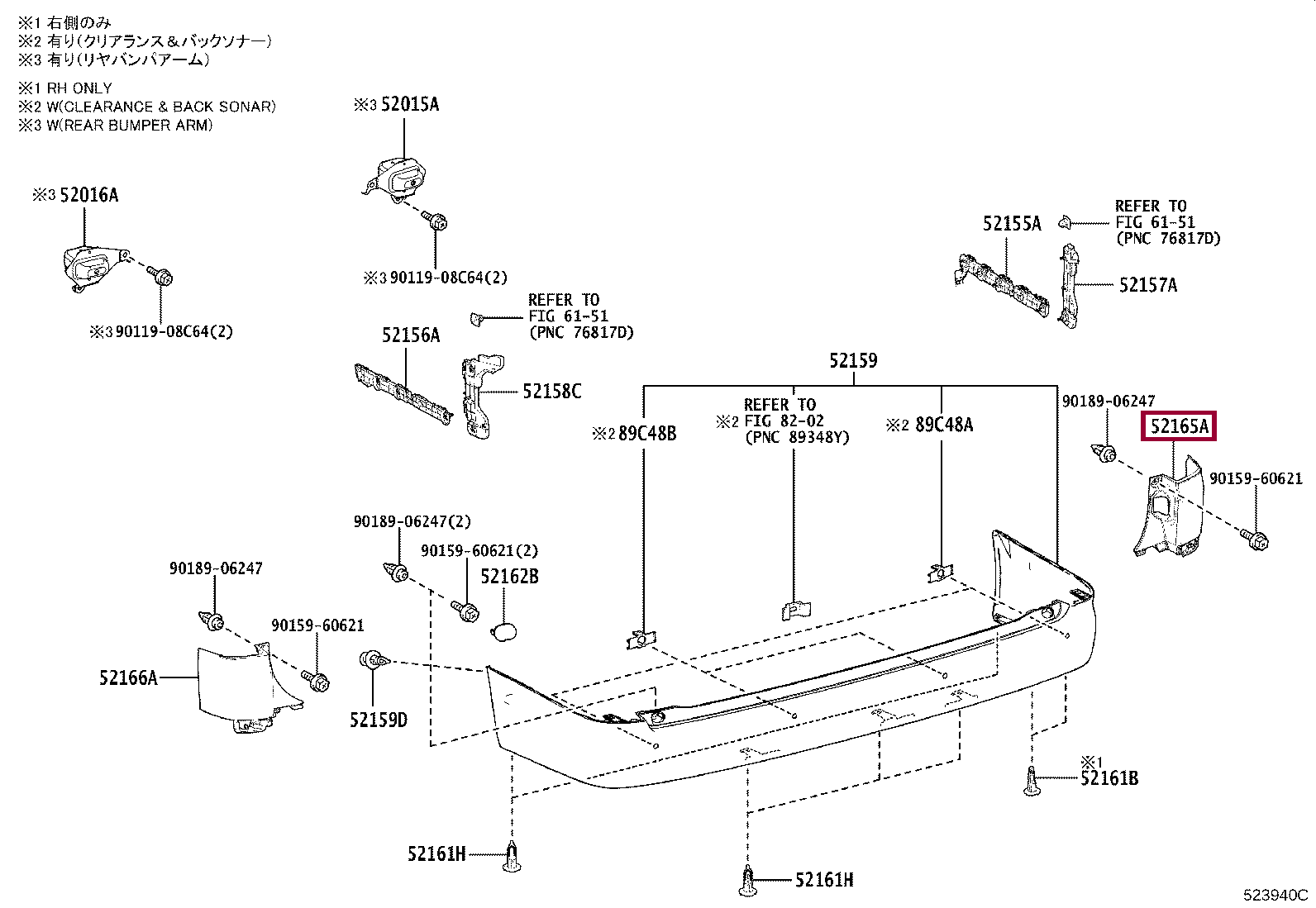 52165-26910, COVER, REAR BUMPER, UPR RH
