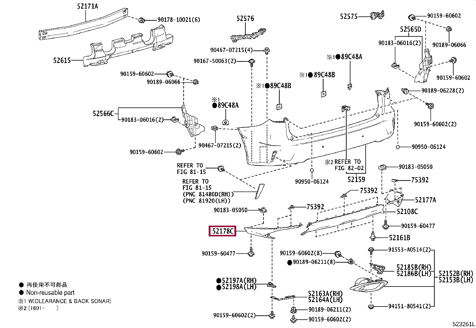 52178-0E020, RETAINER, REAR BUMPER EXTENSION, LH